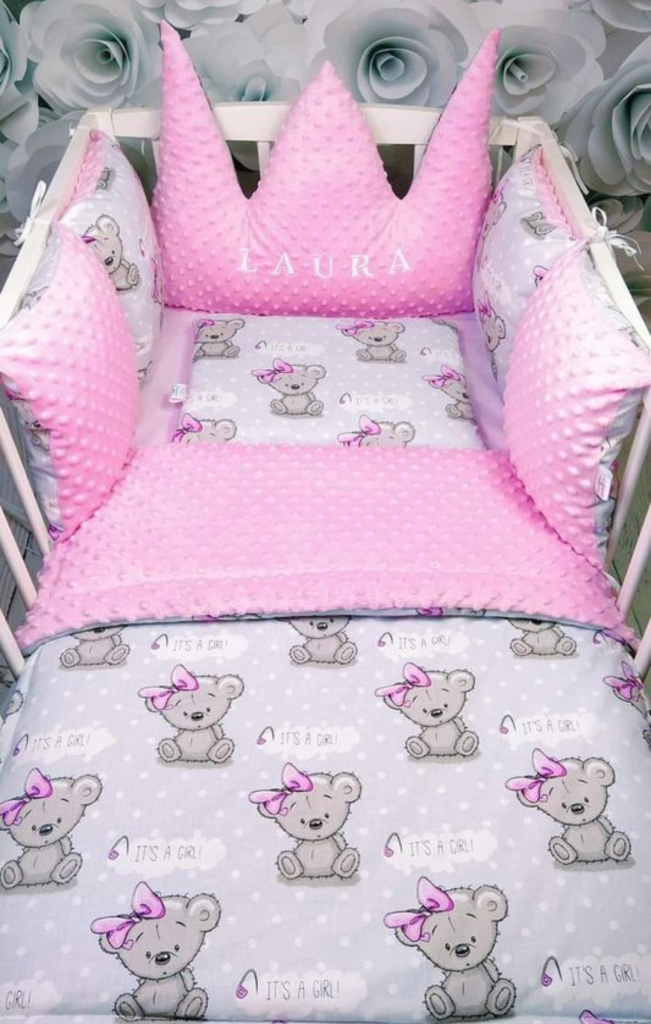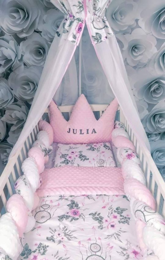 Spraw, aby łóżeczko Twojego Dziecka było wyjątkowym miejscem kojarzącym się z ciepłem i bezpieczeństwem. Dodaj personalizowane elementy, takie jak poduszka z imieniem. Nie zapomnij również o naszym prześcieradle — niesamowicie miłym w dotyku. Warkocz nie tylko ozdobi łóżeczko — dzięki niemu Twoje dziecko uniknie przypadkowych uderzeń i będzie spało spokojnie. Organizer zapewni łatwy dostęp do wszelkich akcesoriów w każdej chwili. Wszystko będzie na swoim miejscu, co ułatwi codzienną opiekę nad Maluszkiem.