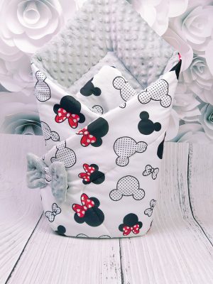 Rożek: Miki czarno-różowe na szarym + minky jasnoróżowe