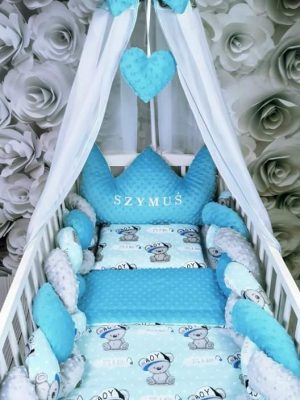 - Kołderka 75x100cm + poduszka płaska 30x40cm + ochraniacz modułowy 4 szt