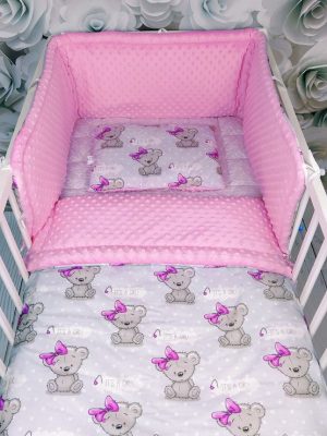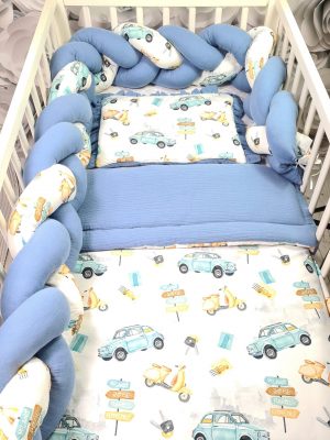 - Kołderka 75x100cm + poduszka płaska 30x40cm + ochraniacz tradycyjny 30x160cm