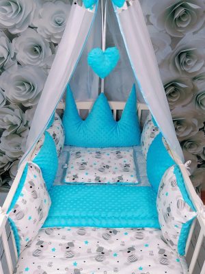 - Kołderka 75x100cm + poduszka płaska 30x40cm + ochraniacz tradycyjny 30x160cm
