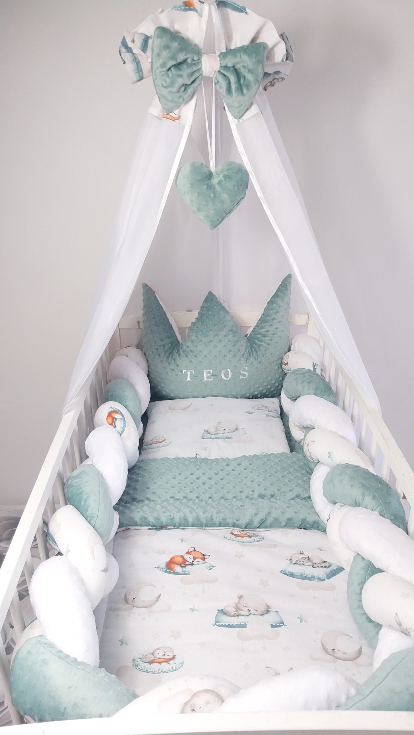 Zestaw uszyty jest ze 100% bawełny i tkaniny minky.